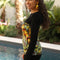 - Composition : Tissu imprimé : 95% coton, 5% élasthanne - Tissu uni : 60% viscose, 35% polyamide, 5% élasthanne
