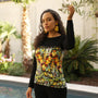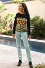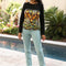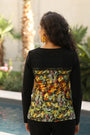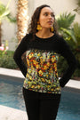 - Haut noir en maille milano et bas imprimé