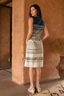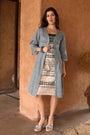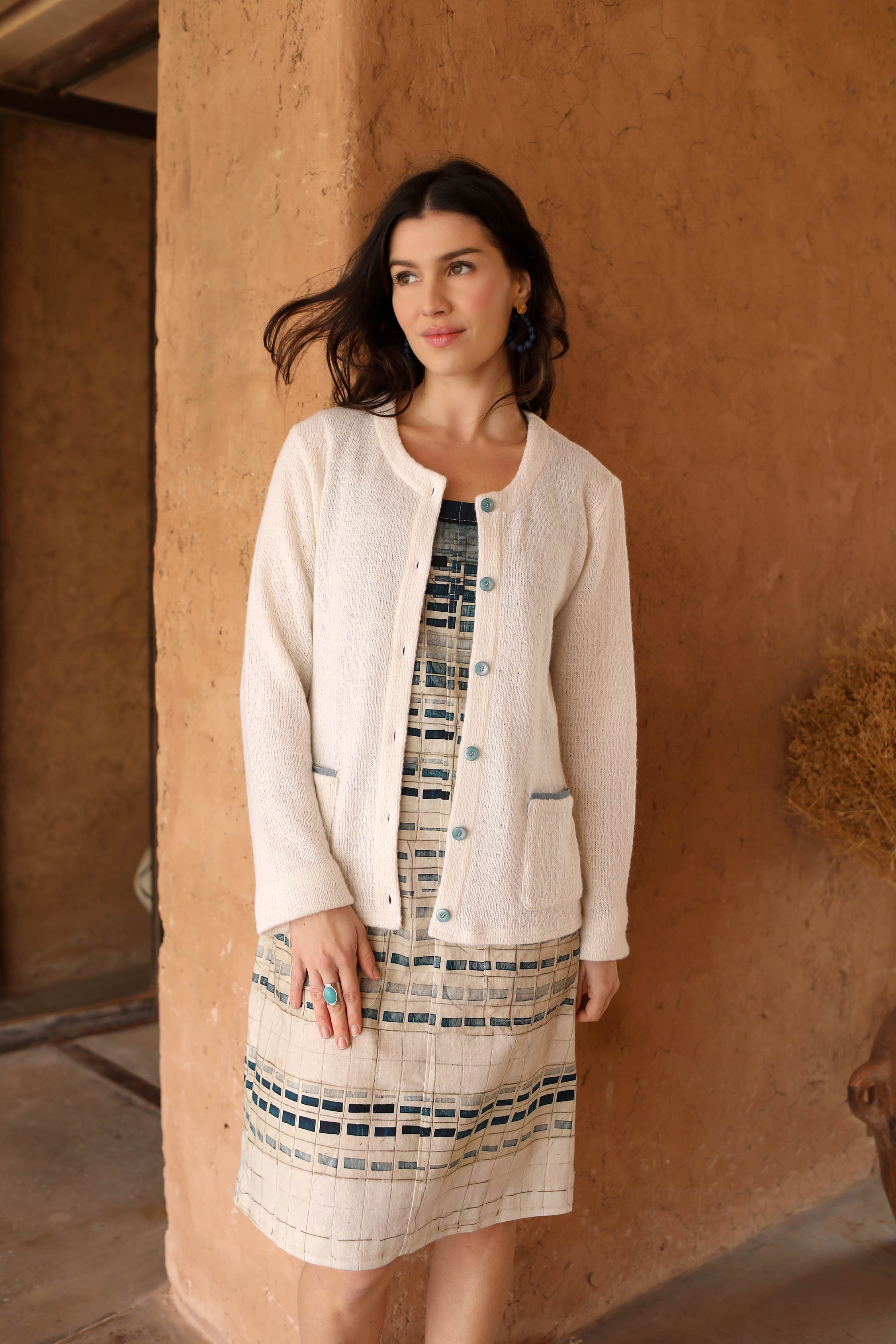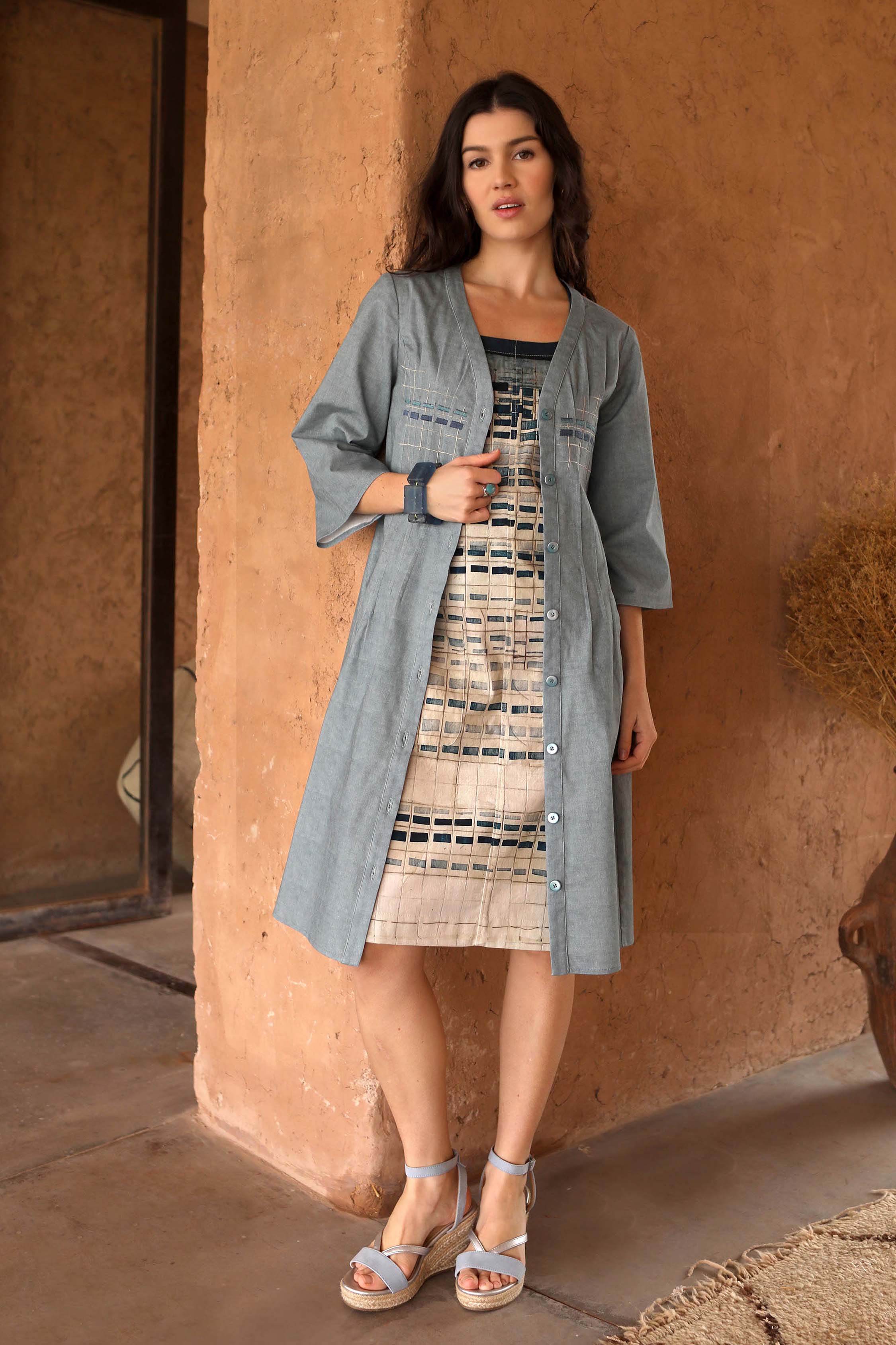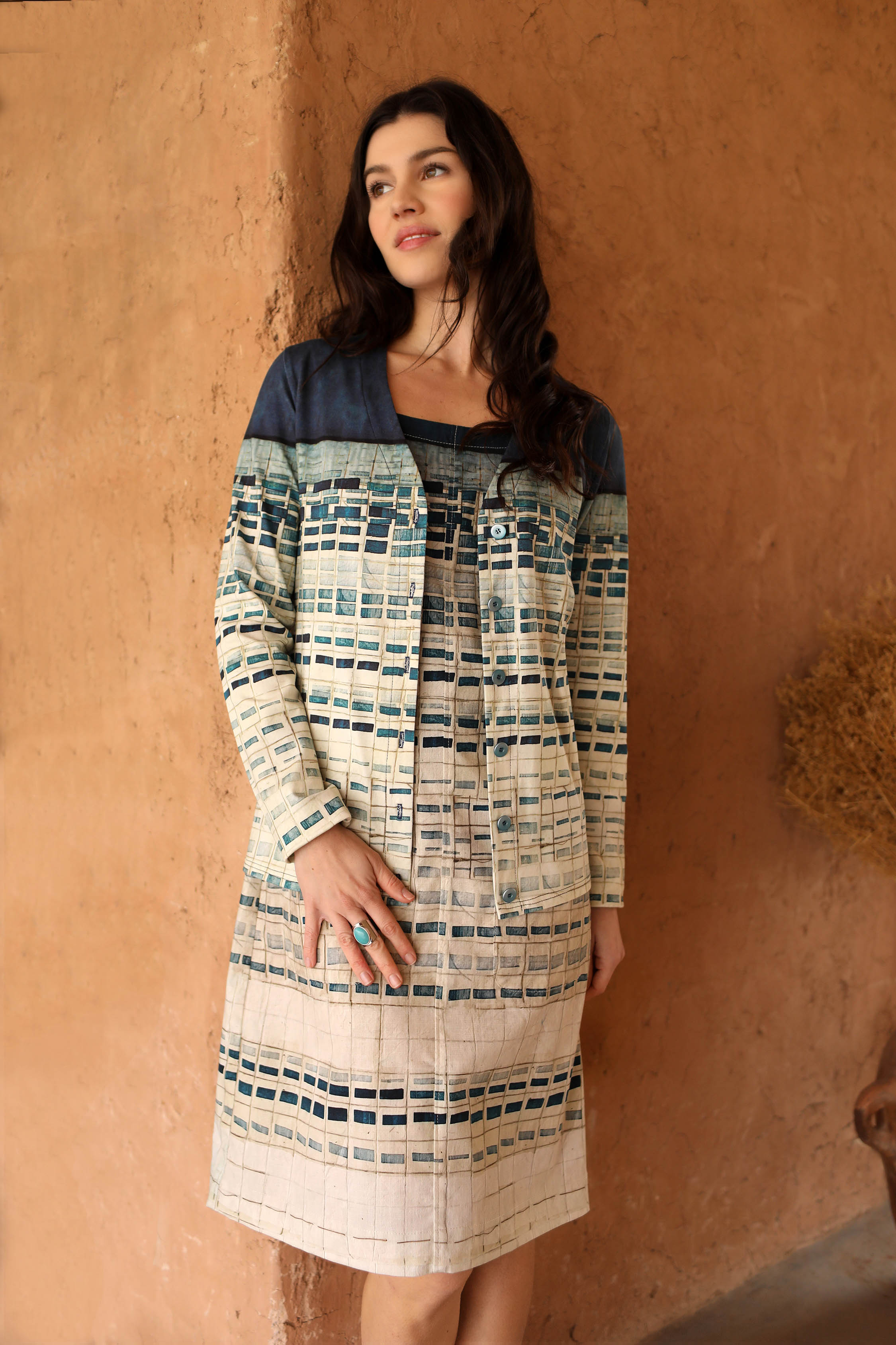 • Coupe droite, légèrement ajustée, avec poches discrètes intégrées dans l’imprimé