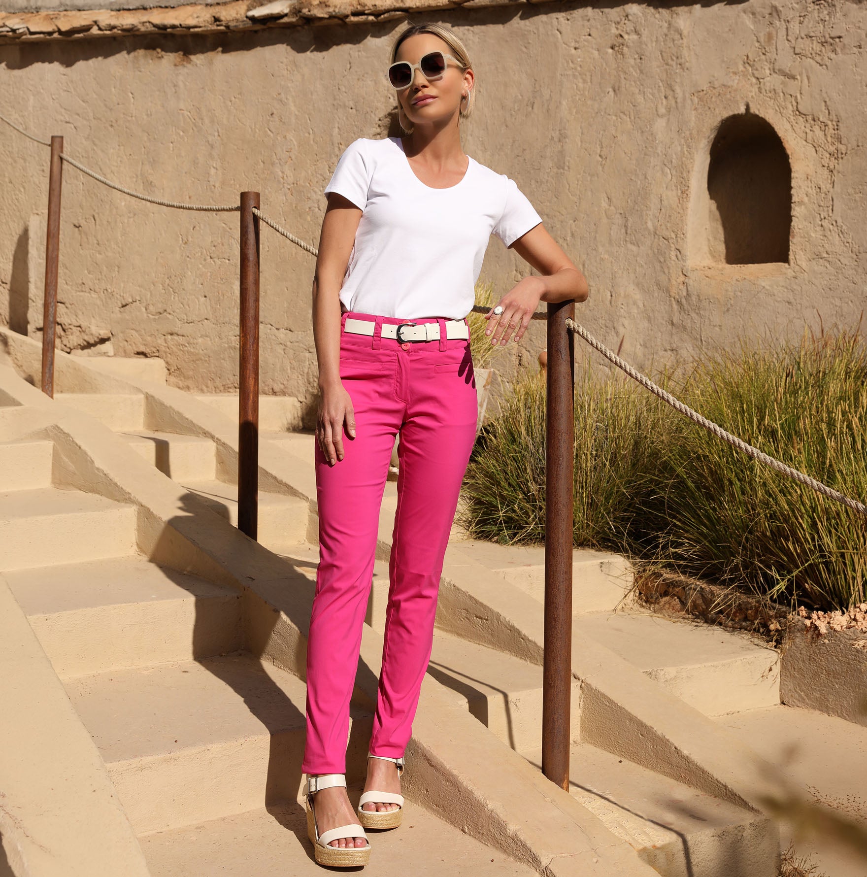 - Coupe ajustée à la jambe, taille normale et ceinture large pour un maintien parfait.